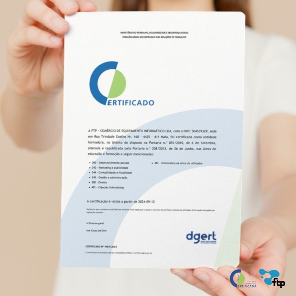 É com grande satisfação que anunciamos que a FTP foi reconhecida como entidade formadora certificada pela DIreção Geral do Emprego e das Relações de Trabalho (DGERT) em diversas áreas de formação.